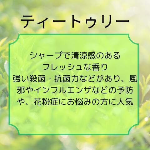 ティートゥリーの持つ独特の香りが、あなたの日常を爽やかに演出します。
