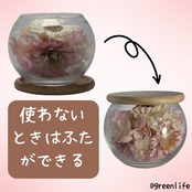 アロマティックボウル ~Pink~は、可愛らしい淡いピンクのデザインにドライフラワーを贅沢に使用したフラワーディフューザーです。