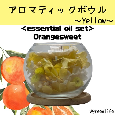 【オイルセット】グリーンライフ ディフューザー アロマティックボウル~Yellow~ オレンジスイート