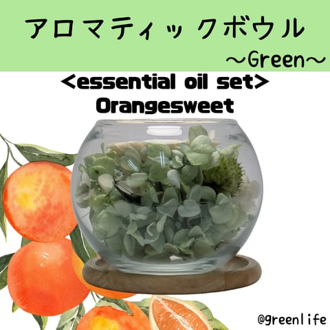 【オイルセット】グリーンライフ ディフューザー アロマティックボウル~Green~ オレンジスイート