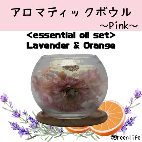 【オイルセット】グリーンライフ ディフューザー アロマティックボウル~Pink~ ラベンダー&オレンジ