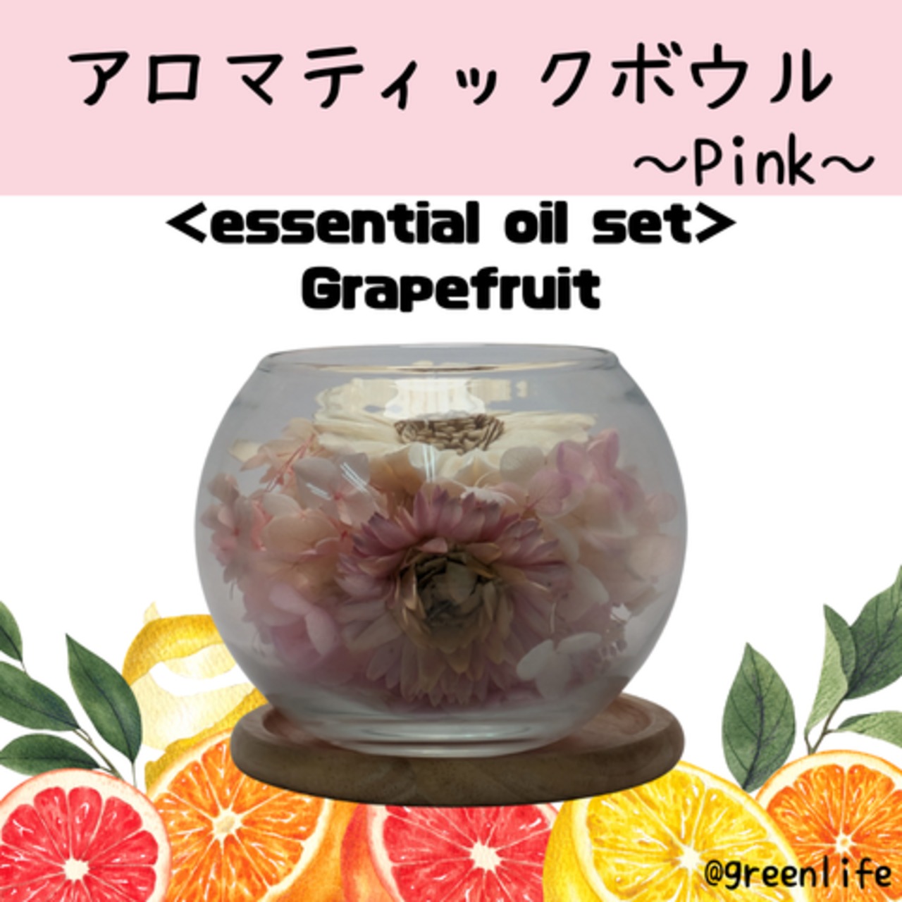 【オイルセット】グリーンライフ ディフューザー アロマティックボウル~Pink~ グレープフルーツ