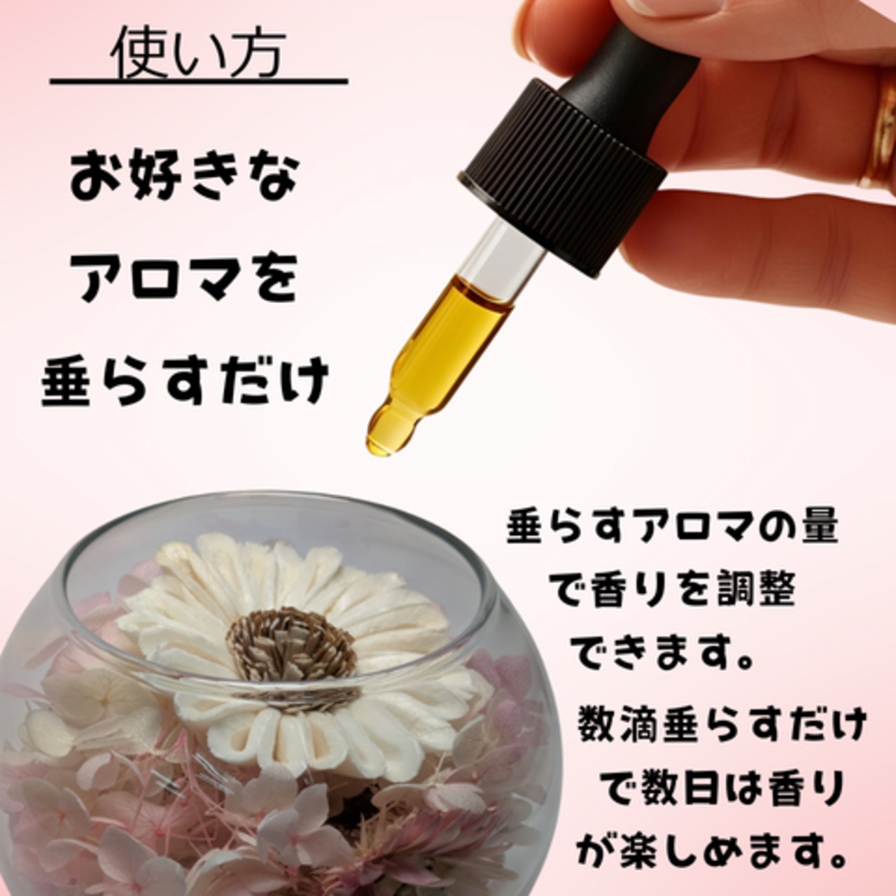自然の素材を活かしたこの商品は、空間に華やかさを与えながら、アロマの香りで心をリラックスさせる効果があります。