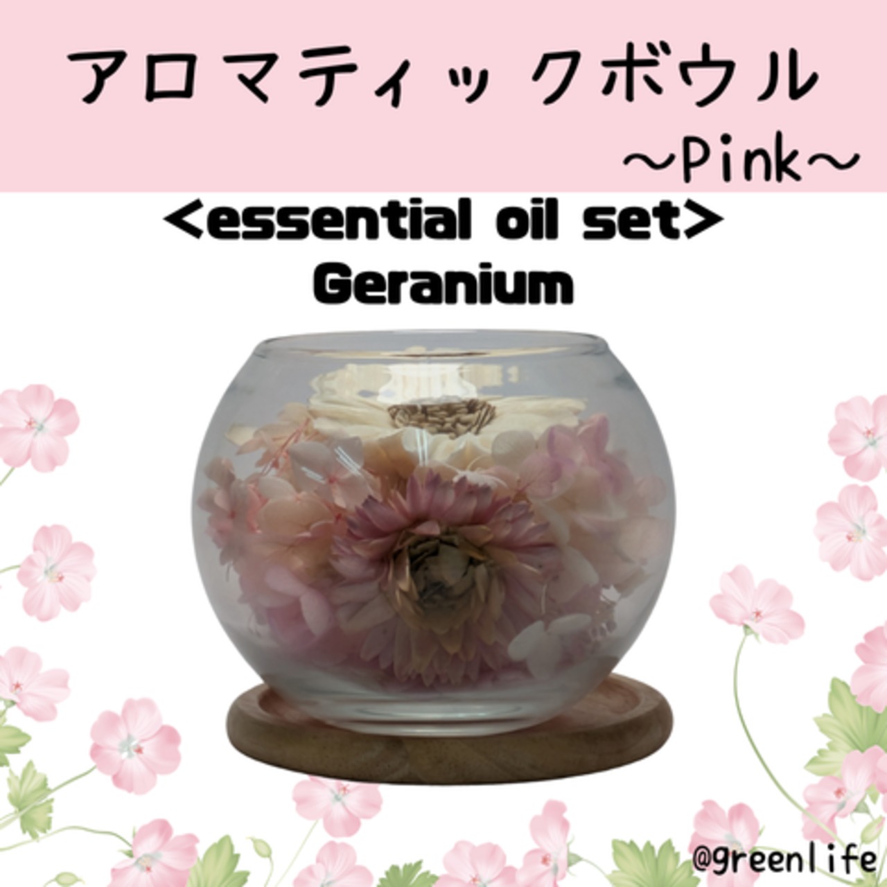 【オイルセット】グリーンライフ ディフューザー アロマティックボウル~Pink~ ゼラニウム フラワーディフューザー リビング 寝室 洗面所 玄関 トイレ 癒しグッズ 芳香器 リラクゼーショングッズ アロマ アロマグッズ